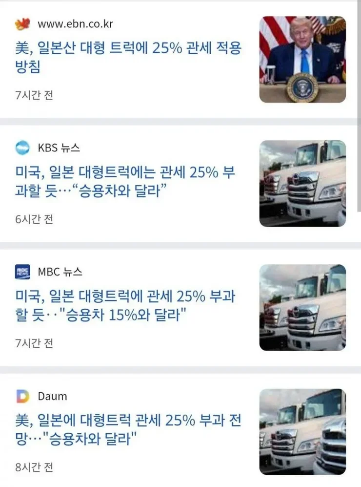 이제와서 대형트럭은 자동차와 달라서 덩치가 크니 싯가대로 관세 먹이겠다?