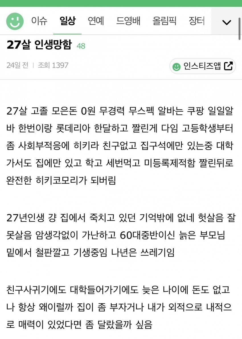 인생 망했다는. 27살 여자가 쓴 글
