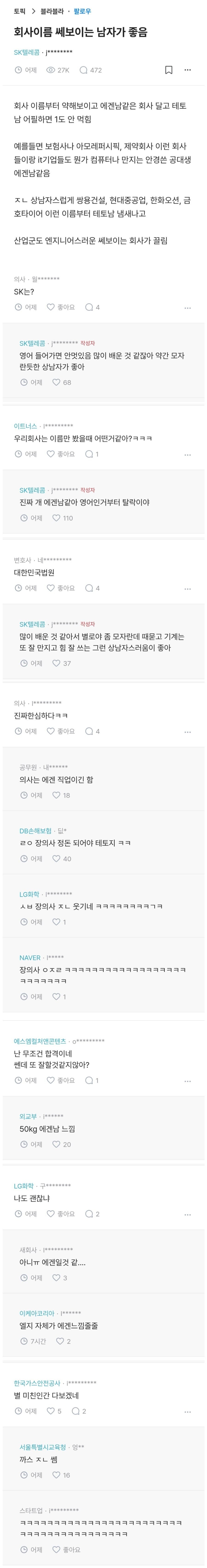 회사이름 쎄보이는 남자가 좋음.Blind