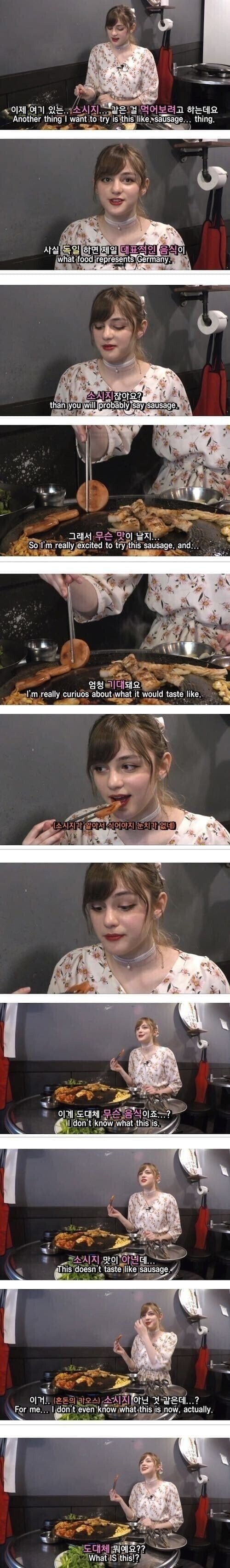 분홍소세지 먹고 당황한 독일 여성