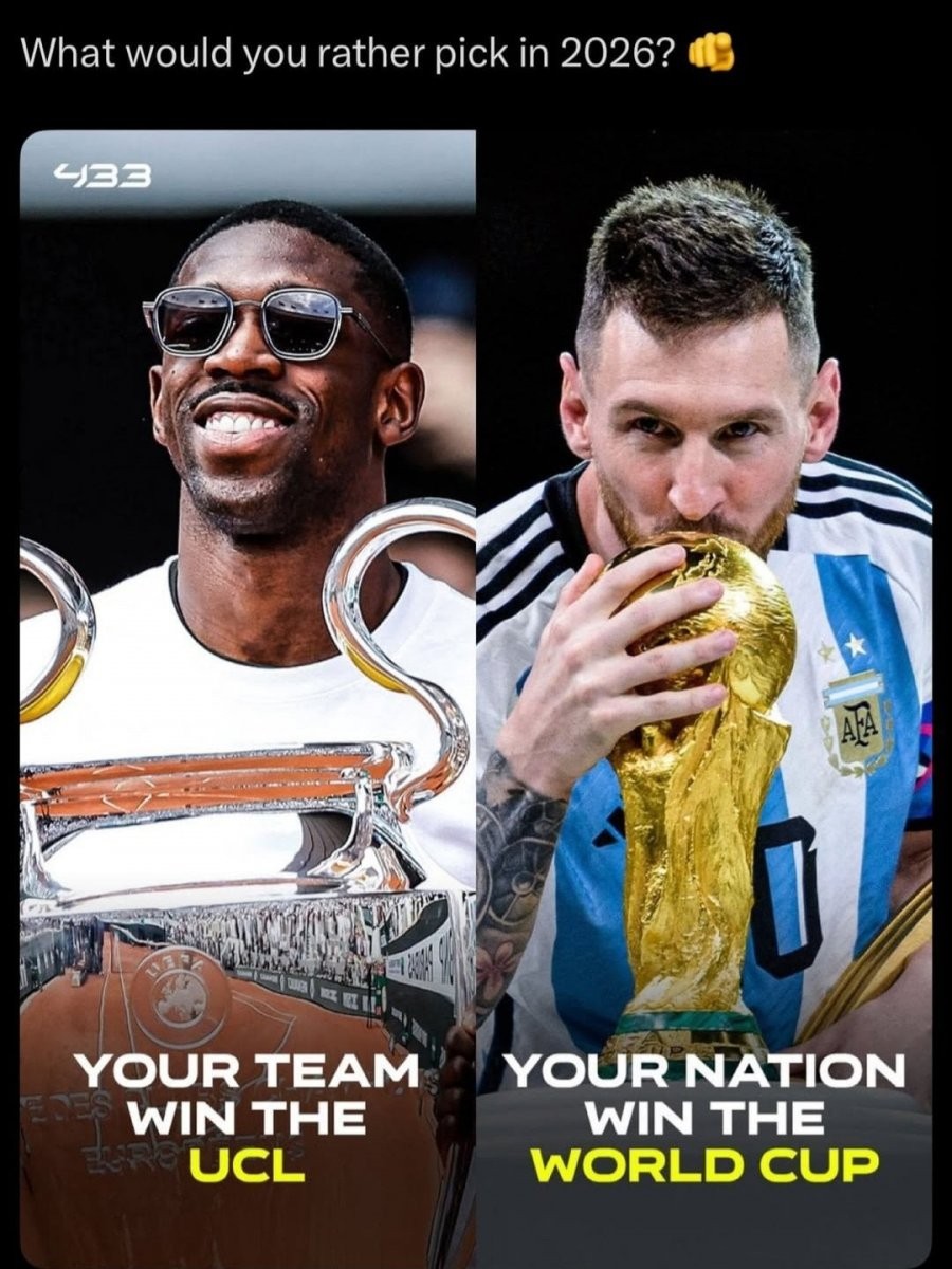 2026년 축구에서 하나만 가능하다면? 최고관리자 2025-10-21 19:00 159 0 이전글 다음글 목록 본문 응원팀 챔스 우승 vs 우리나라 월드컵 우승(단, 금전 목적 베팅 금지) 댓글목록0 등록된 댓글이 없습니다.