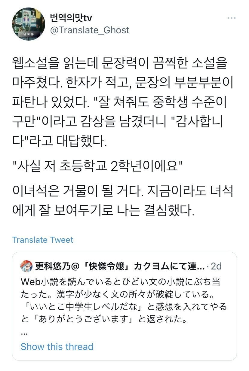 잘 쳐봐야 중학생 정도 수준이라는 웹소설.jpg