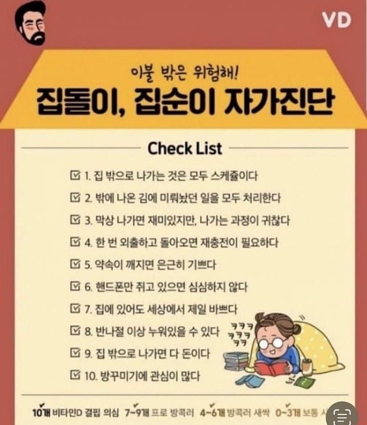 집돌이 집순이 자가 진단 해보세요 최고관리자 2025-12-01 05:00 7 0 이전글 다음글 목록 본문 5번 특히 공감합니다 밖에 나가는거 좋아한다 생각했는데 거의 포함이네요 댓글목록0 등록된 댓글이 없습니다.
