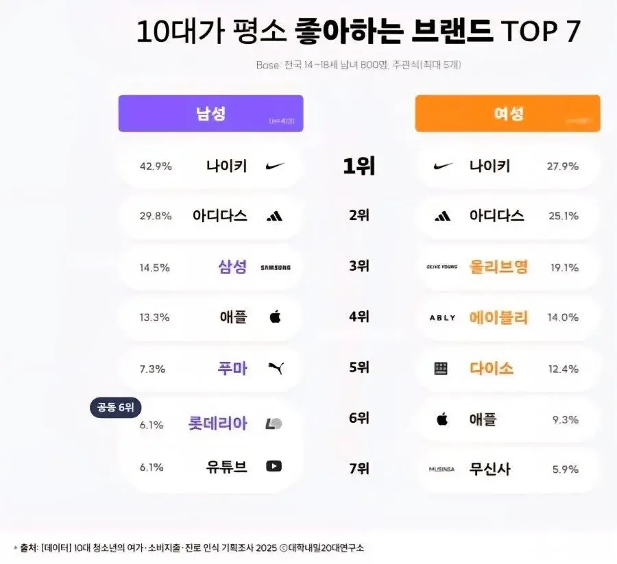 요즘 10대들이 좋아하는 브랜드 순위