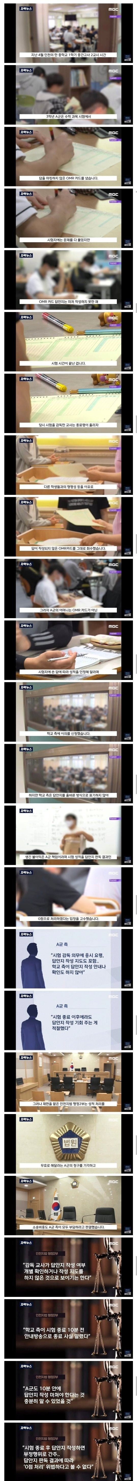 마킹못해 0점처리된걸로 학교 고소한 중3 결과