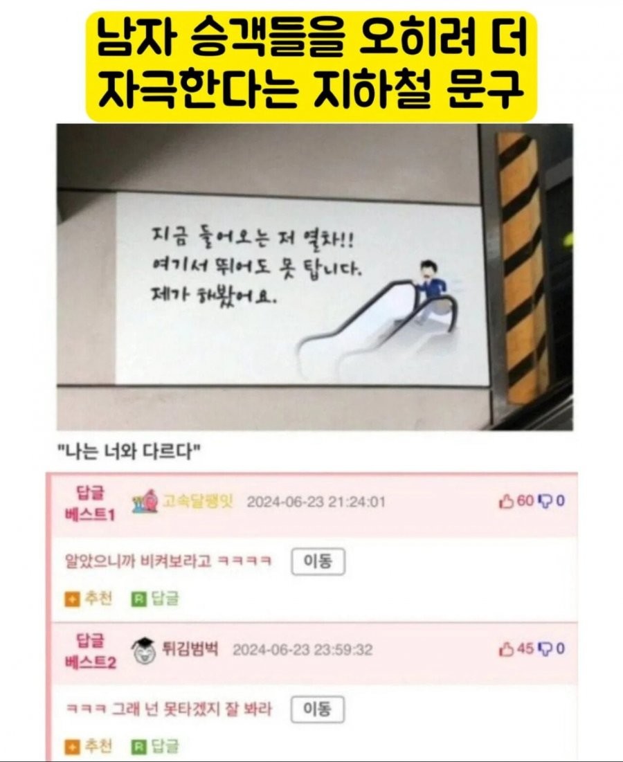 남자 승객들 승부욕 자극하는 지하철 멘트