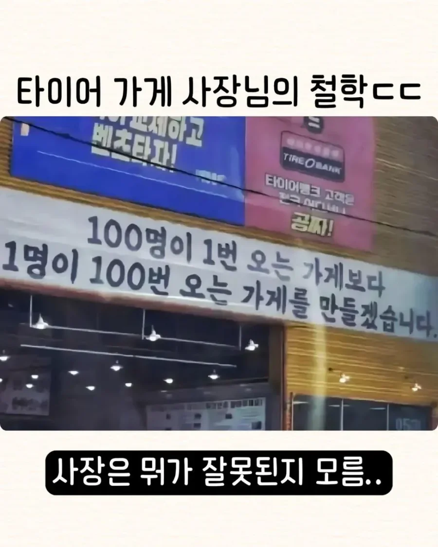 사장님의 장사철학 ㄷㄷ 최고관리자 2026-01-22 19:01 20 0 이전글 다음글 목록 본문 1명이 백번오면 그다음엔 차로 가게 들이박을듯... 댓글목록0 등록된 댓글이 없습니다.