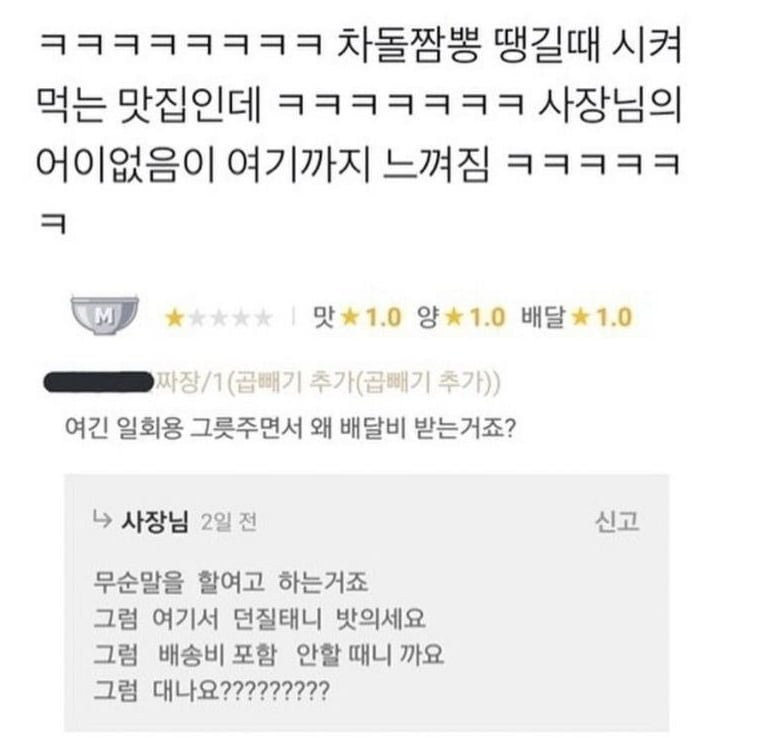 리뷰도 어이 없고 댓글 맞춤법도 ㅋㅋ