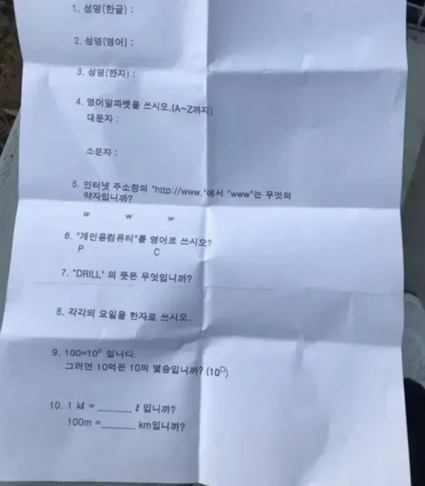 믿기 힘든 중소기업 생산직 시험문제..jpg