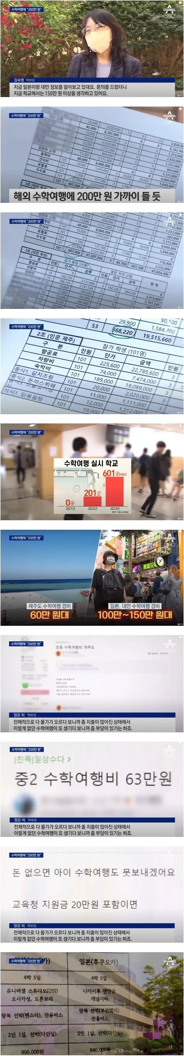 요즘 수학여행 비용