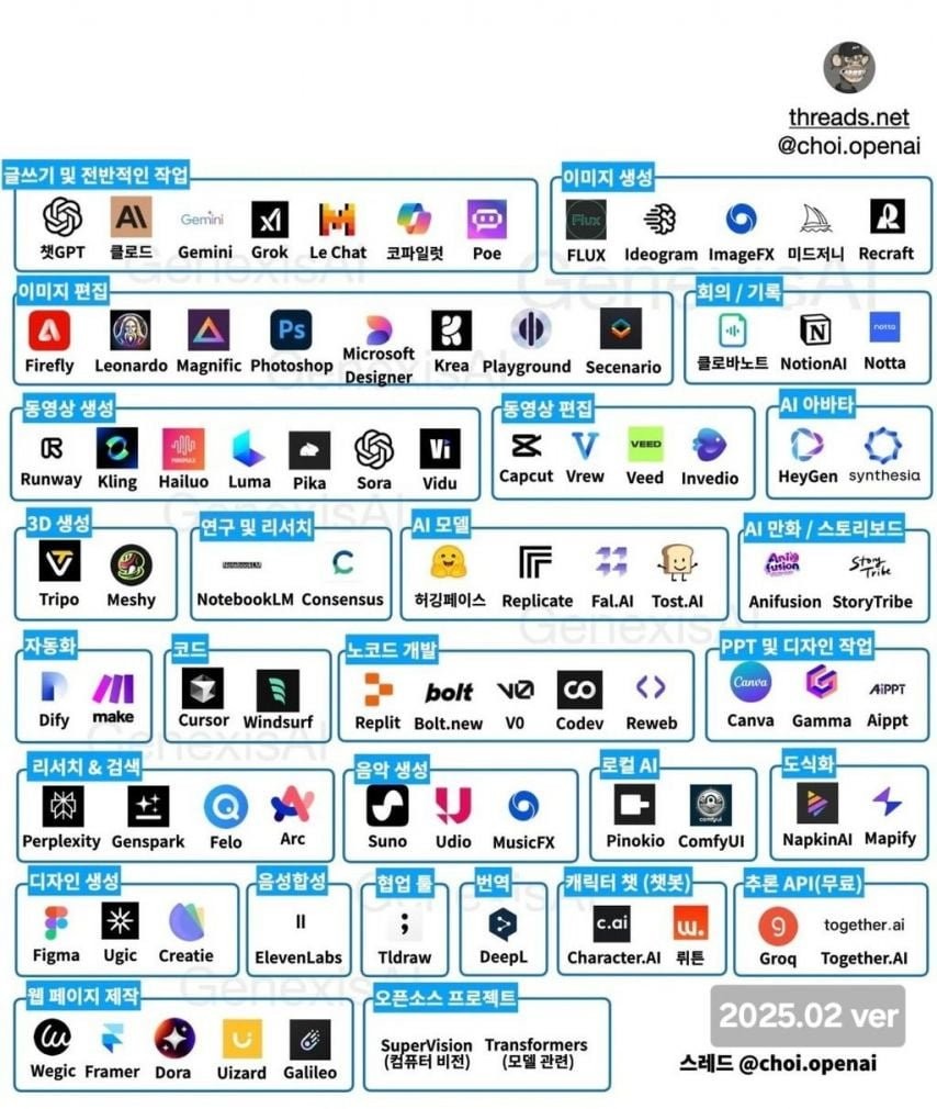 챗지피티밖에 모르는 사람들을 위한 용도별 생성형 AI 종류 정리.jpg 최고관리자 2025-03-25 01:00 256 0 이전글 다음글 목록 본문 댓글목록0 등록된 댓글이 없습니다.