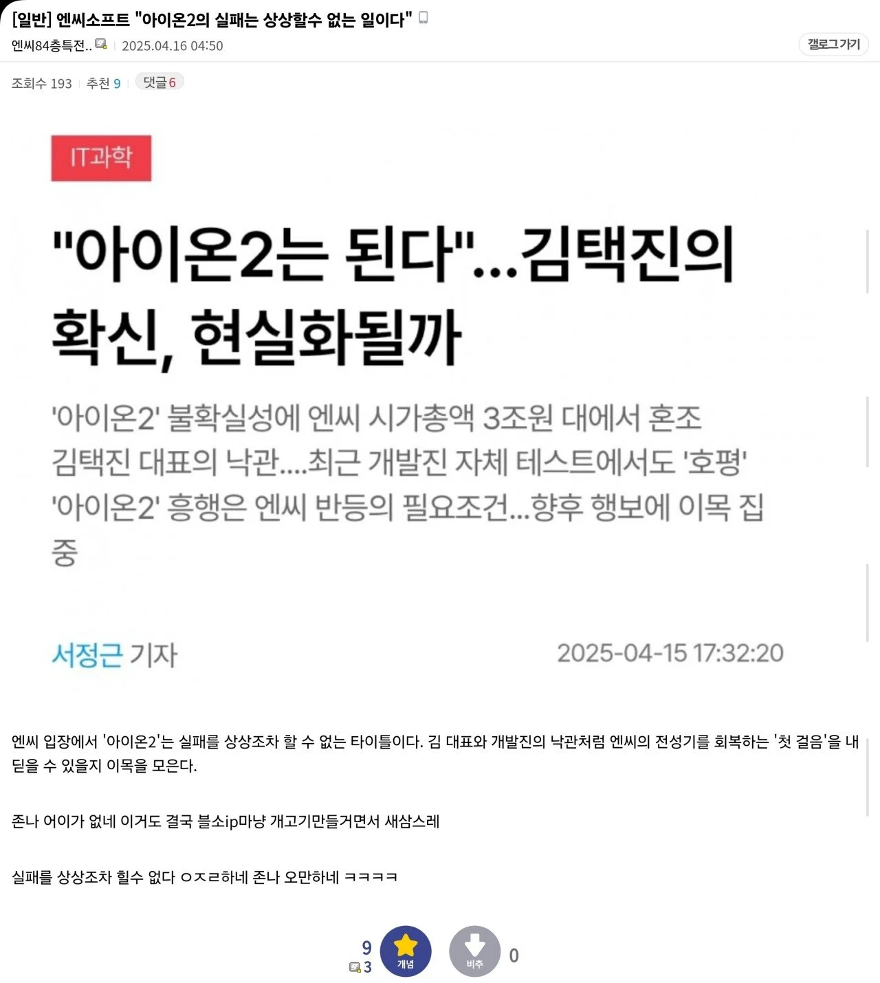 엔씨소프트 아이온2의 실패는 상상할수 없는 일이다