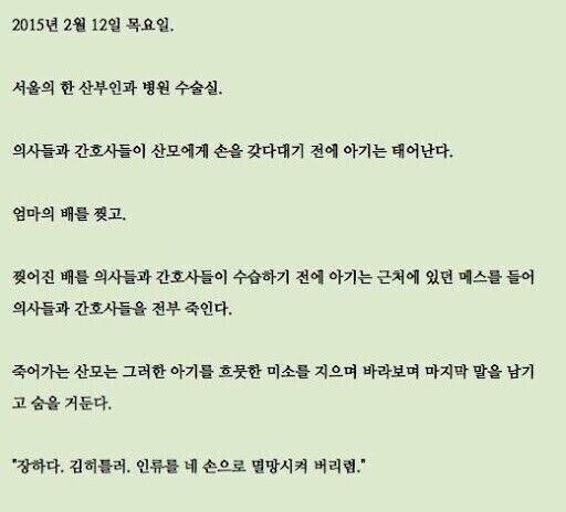 대한민국 웹소설 역사상 최강의 도입부 최고관리자 2025-05-15 09:02 20 0 이전글 다음글 목록 본문 아직도 이걸 넘는 도입부를 보지 못함문제는 진짜 딱 도입부만 있음 댓글목록0 등록된 댓글이 없습니다.